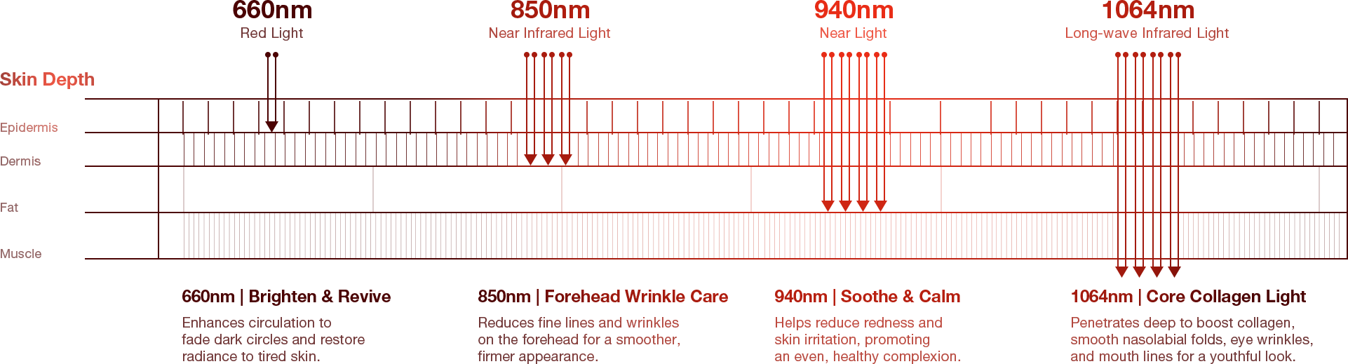 - Clinically proven red (660nm) and wavelengths reduce wrinkles in just 4 weeks